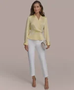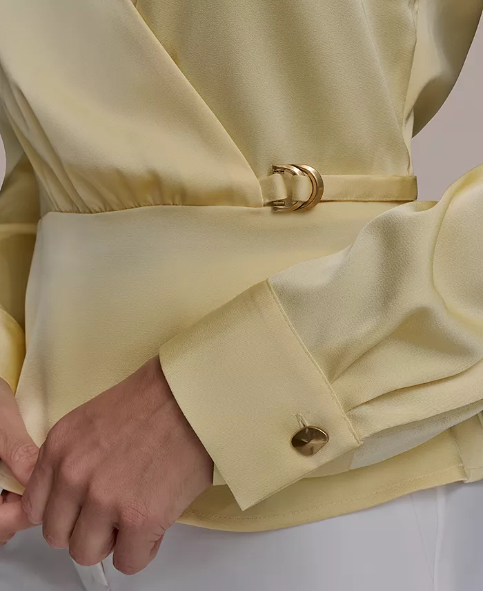 Women’s Hardware-Trim Faux-Wrap Blouse