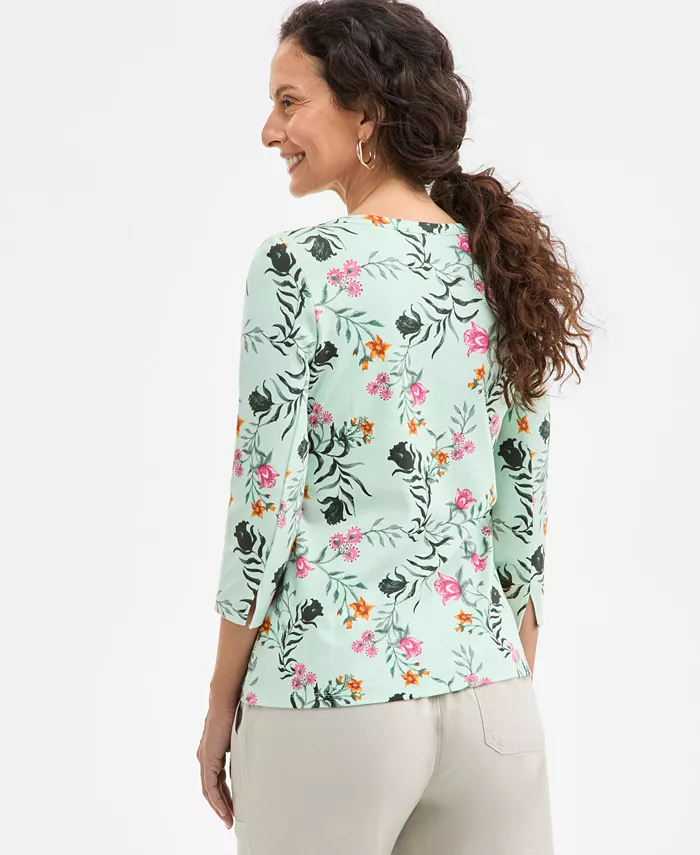 Women’s Printed Pima Cotton 3/4-Sleeve Top, Exclusively at Macy’s