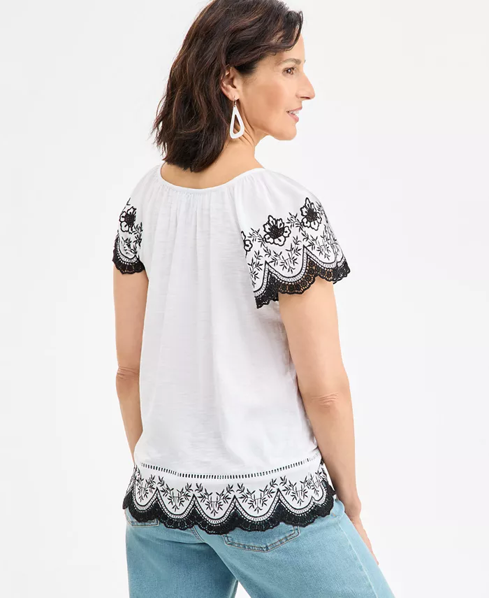 Women’s Scoop-Neck Embroidered Short-Sleeve Top, Exclusively at Macy’s